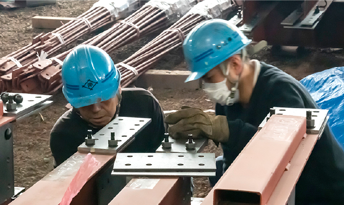 経験を重ねた高い技術を持つスタッフが、溶接を行います。さらに、半自動溶接機や溶接ロボットなどの最新機器を積極的に導入し、生産性の向上を図っています。